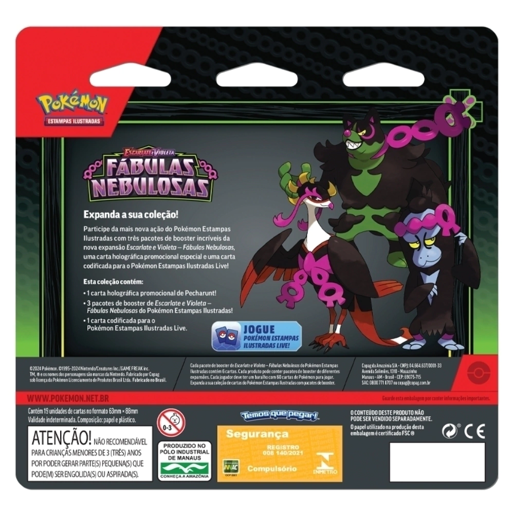 - A Variação (3 Unidades) Contém: 3 Unidades de Blister Triplo Fábulas Nebulosas com a carta promocional do Pecharunt;