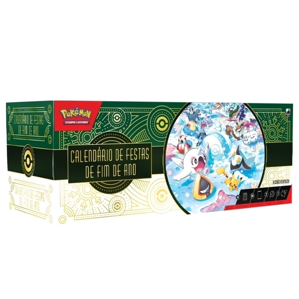 Pela primeira vez, o Calendário de Festas de Fim de Ano vem para o Brasil! Celebre 25 dias de surpresas, de pacotes de booster a moedas de Pokémon, todos os dias há uma surpresa Pokémon diferente para abrir.