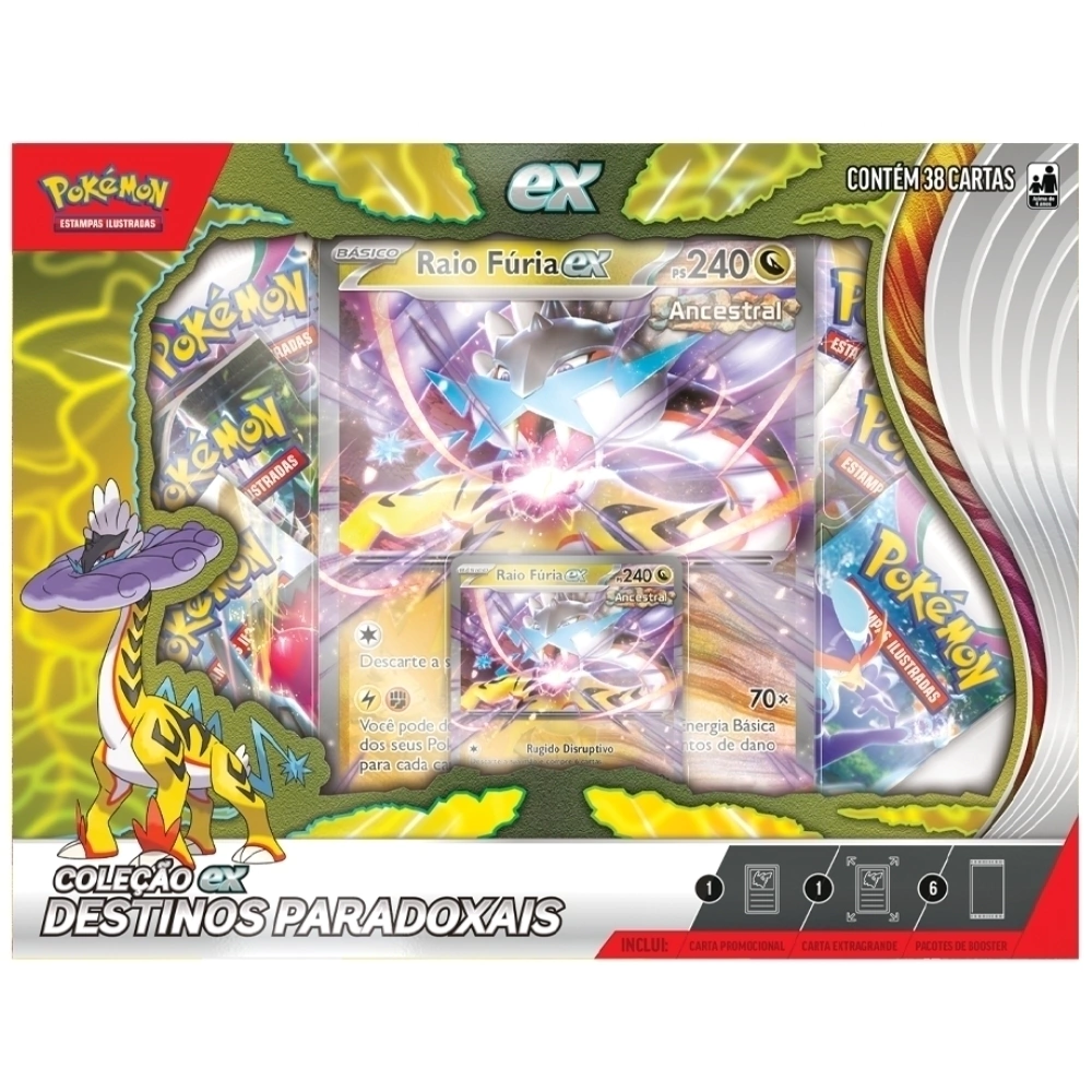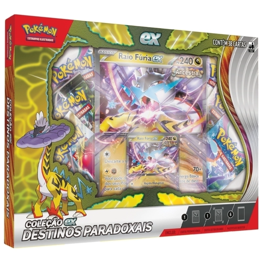 - A variação (Raio Fúria EX) Contém: 1 Unidade da Box Pokémon Raio Fúria EX Destinos Paradoxais;