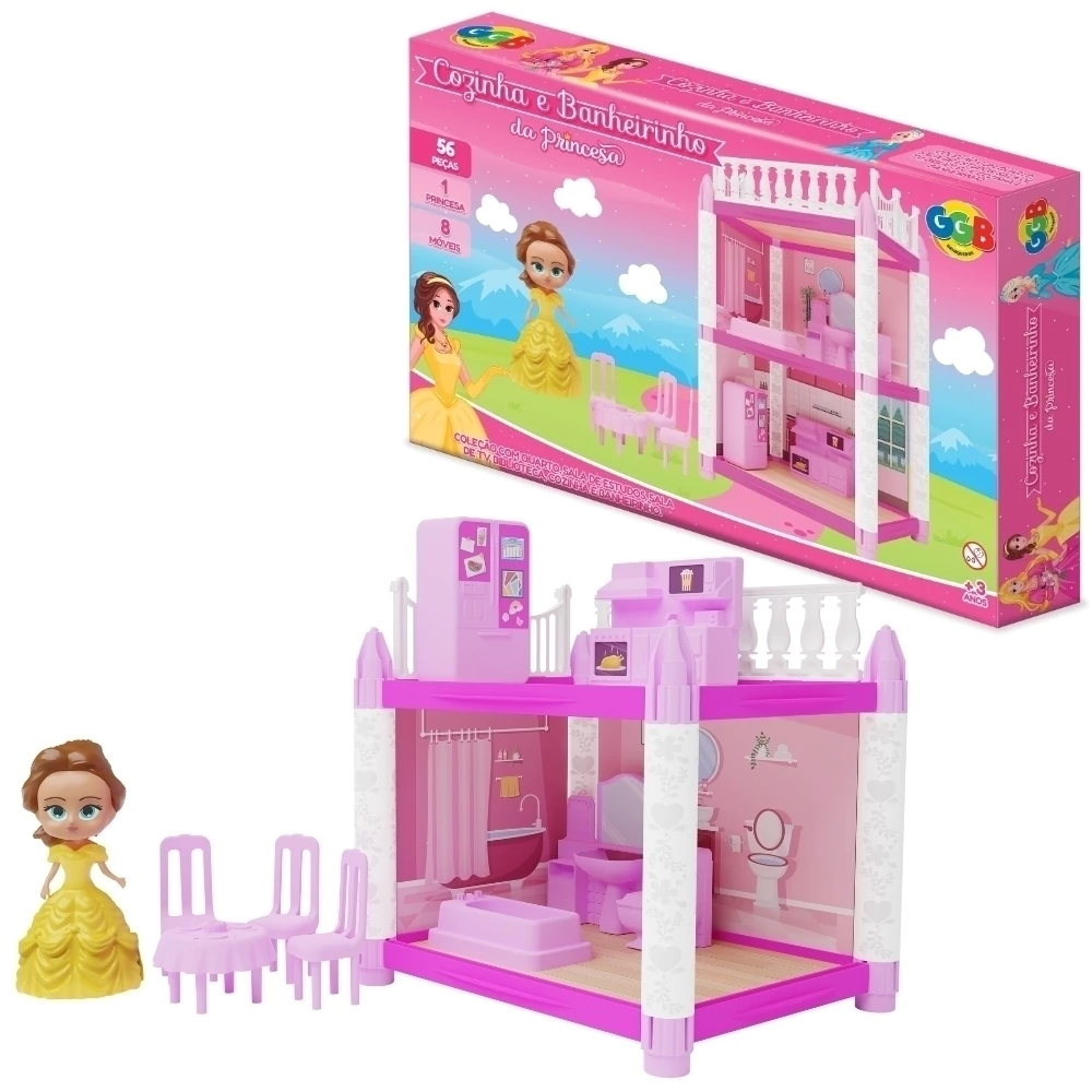 - Contém: 56 peças, 5 adesivos, 1 princesa e 8 móveis.