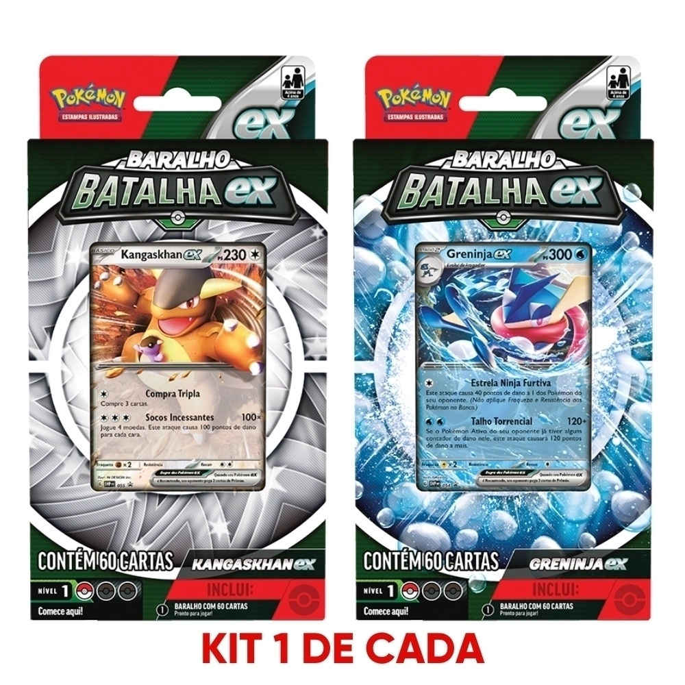- A Variação (Kit 1 de cada) Contém: 1 unidade de deck ex do Kangaskhan + 1 unidade de deck ex do Greninja;