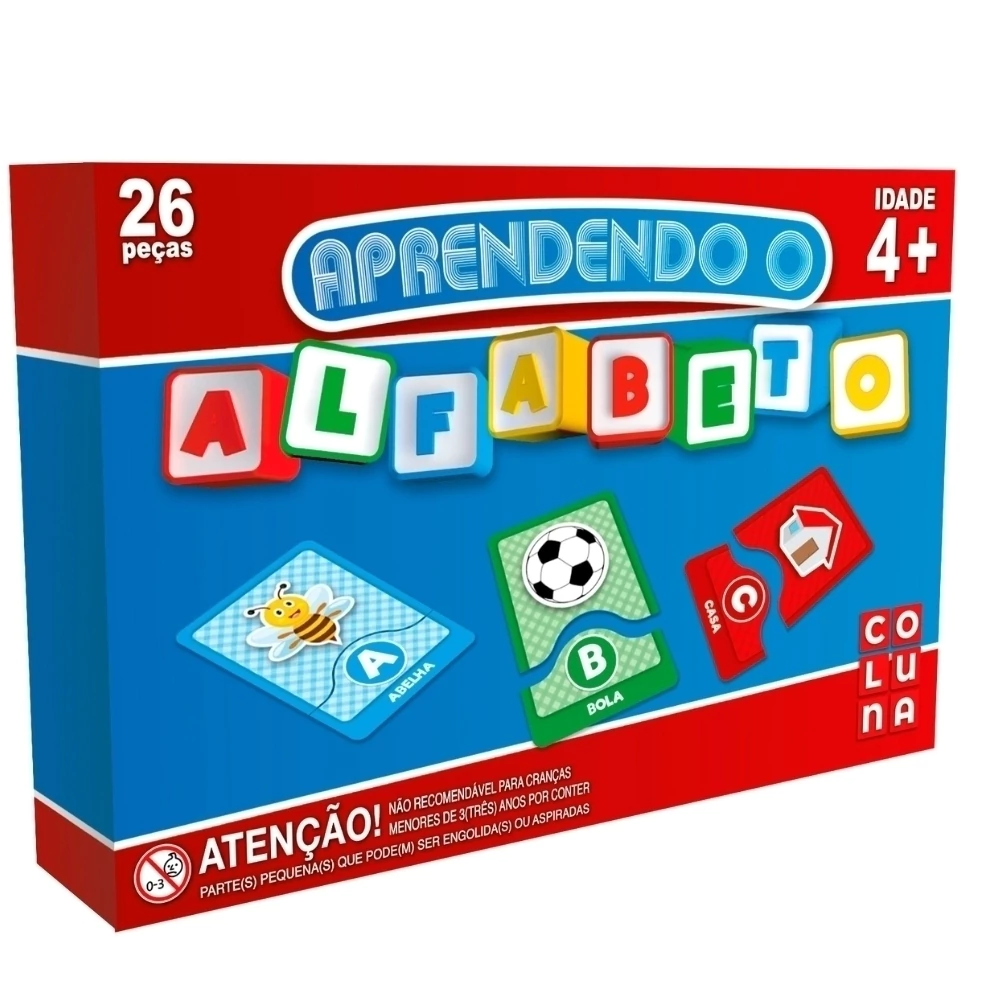 O jogo auxilia no aprendizado do alfabeto de forma diverti-da. Cada peça é composta por duas partes.