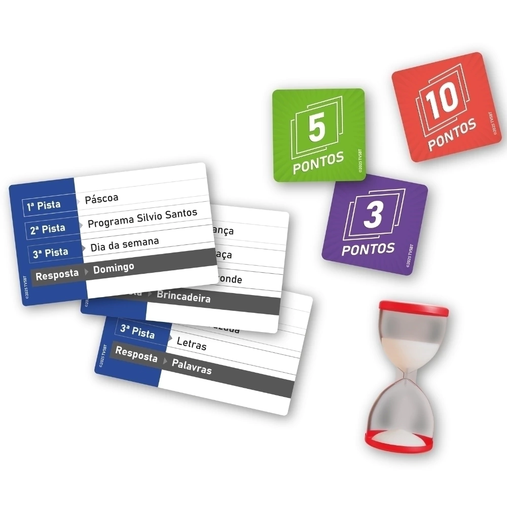 - Contém: 168 cartas com pistas, 36 fichas de pontuação e 1 ampulheta.