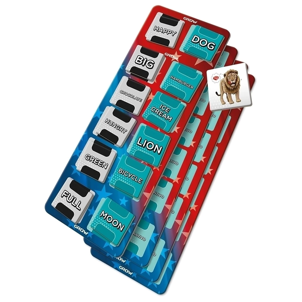 E tem mais! Com o aplicativo GROW INTERATIVO, a diversão se torna ainda mais imersiva. Basta apontar o celular para escanear o verso das cartelas e a criança poderá checar a correspondência entre as cartelas e ouvir a pronúncia correta de cada palavra!