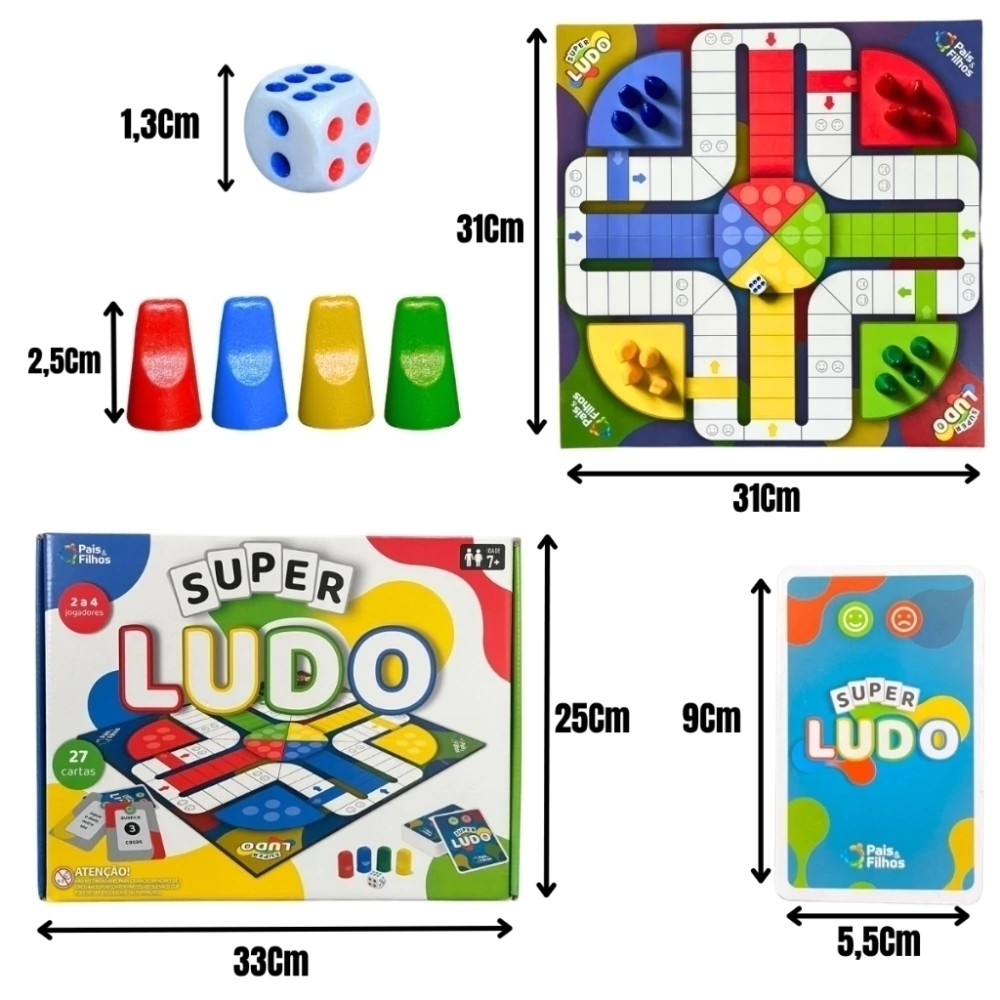 - Contém: 1 tabuleiro, 27 cartas, 16 pinos e 1 dado.