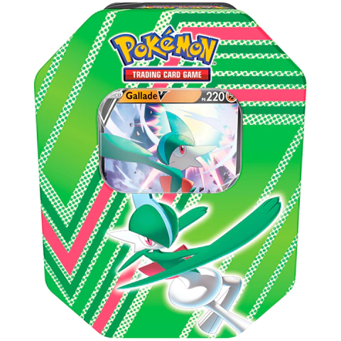 - A lata vem com uma carta Pokémon especial de Gallade V SWSH258;