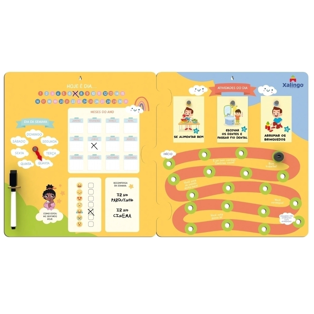 O Painel de Atividades incentiva as crianças no estabelecimento de uma rotina eficaz de forma leve e divertida. Oferece uma série de benefícios para o cotidiano e o desenvolvimento dos pequenos, através de atividades diversas relacionadas ao seu dia-a-dia, envolvendo estudos, diversão, tarefas de casa e muito mais.