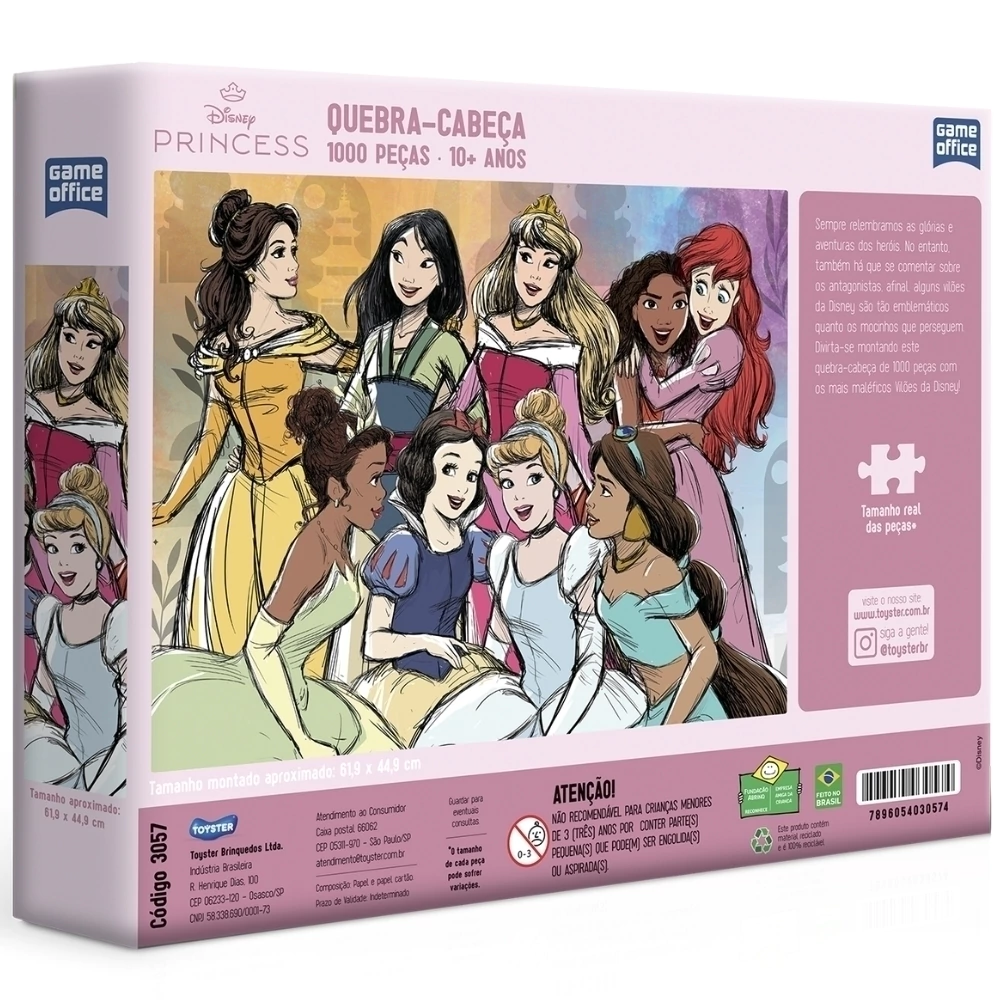 Monte este incrível quebra-cabeça de 1000 peças ilustrado com as princesas mais queridas do mundo Disney.