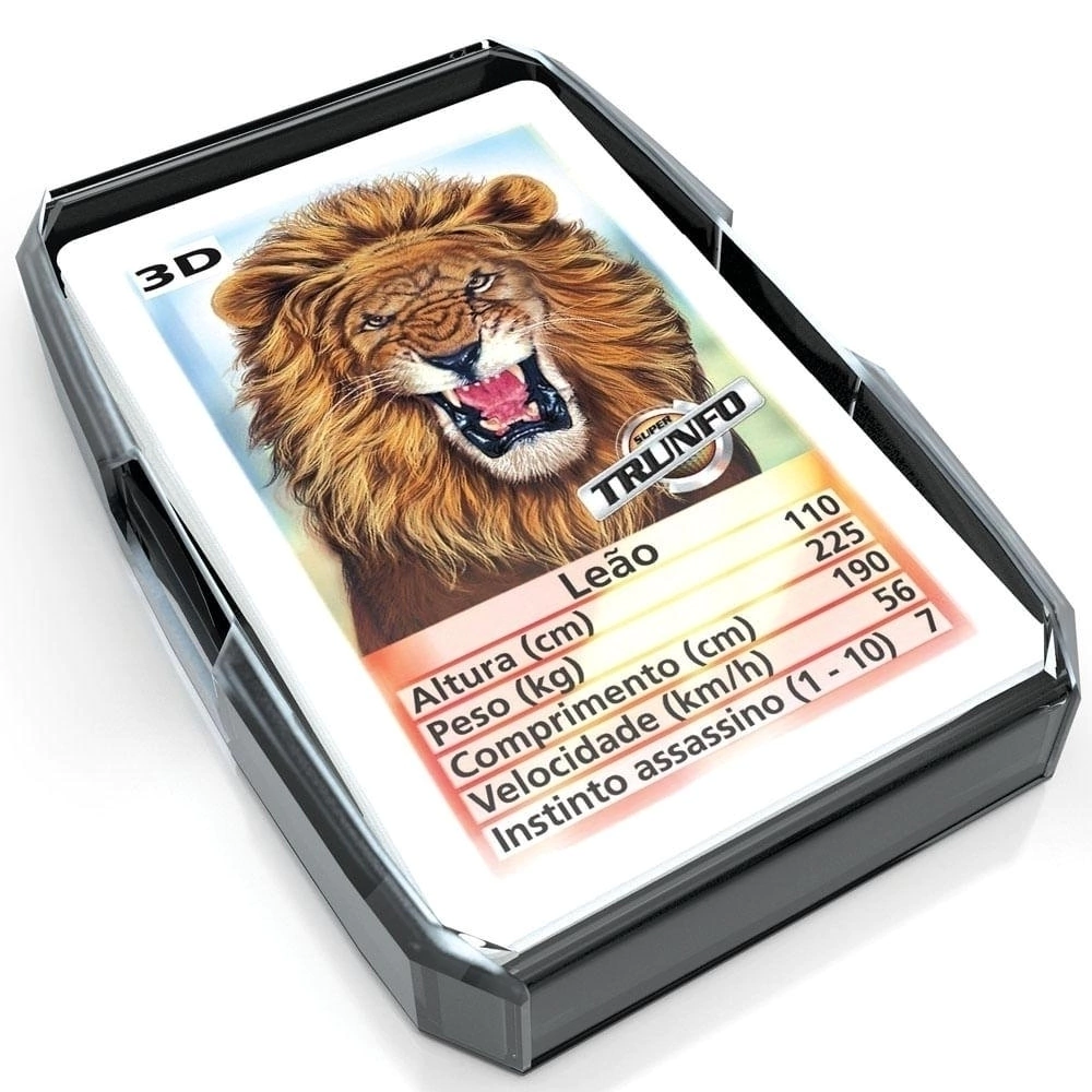 Super Trunfo Predadores traz 32 cartas com ilustrações e informações sobre os maiores e mais ferozes predadores do mundo animal.